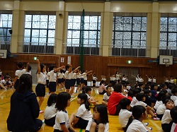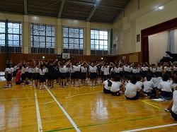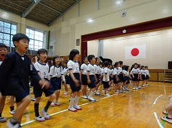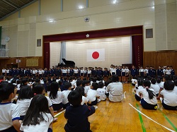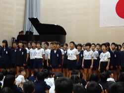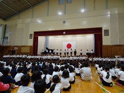 4年生と6年生の1年生を歓迎する発表の後に、1年生も「さんぽ」の歌を元気に歌いました。