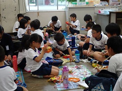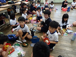 あいにくの雨で遠足は中止になってしまいましたが、お見知りの会の後に1年生と6年生の交流会も行われ、楽しいひとときを過ごすことができました。
