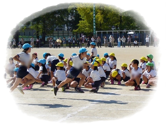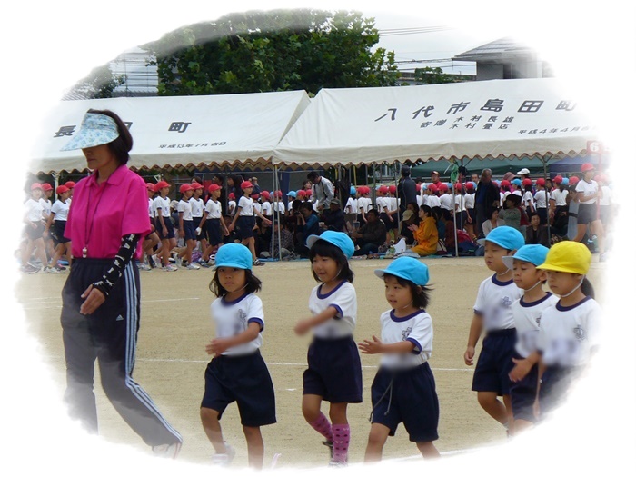運動会は朝から小雨が降っていましたね。でも、何とか午前中は持ちこたえ、主要種目は実施できました。一年生も初めてでしたが、頑張りましたよ。