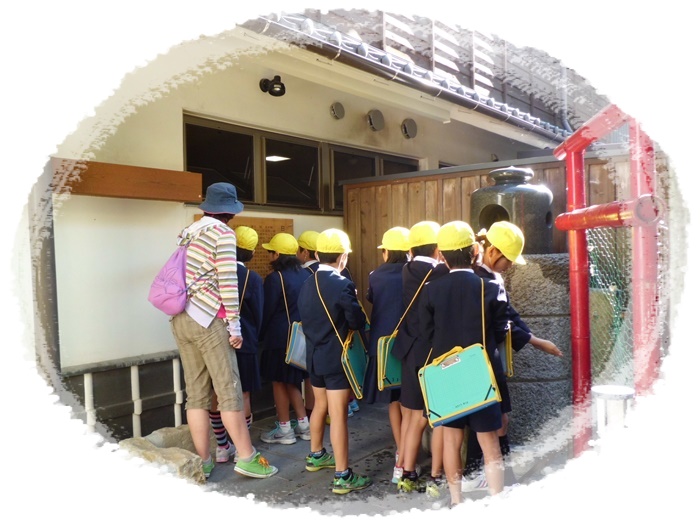 いろんな学年が社会科見学に行きました。上は3年生です。日奈久のまちです。
