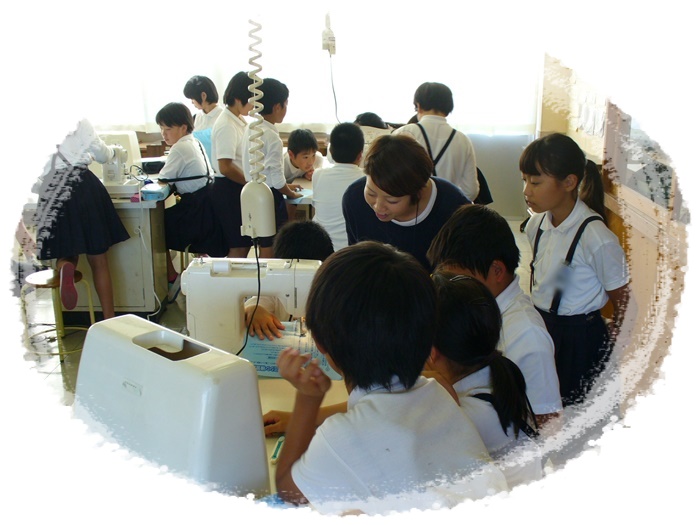 上は、5年生のミシンの学習のお手伝いに来ていただいている様子です。