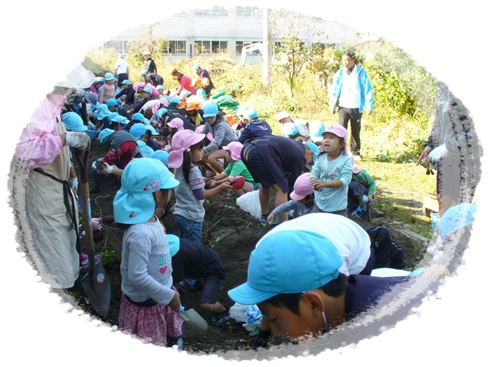 おとなりの太田郷幼稚園のみなさんと5年生がおいもほりの交流をしました。
