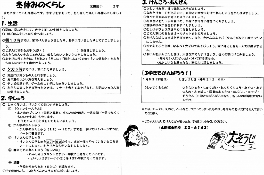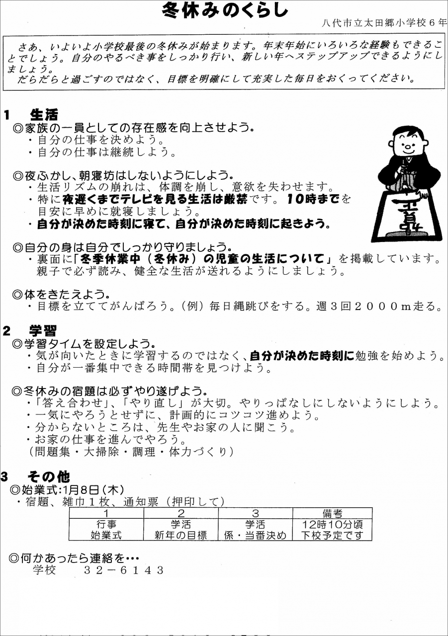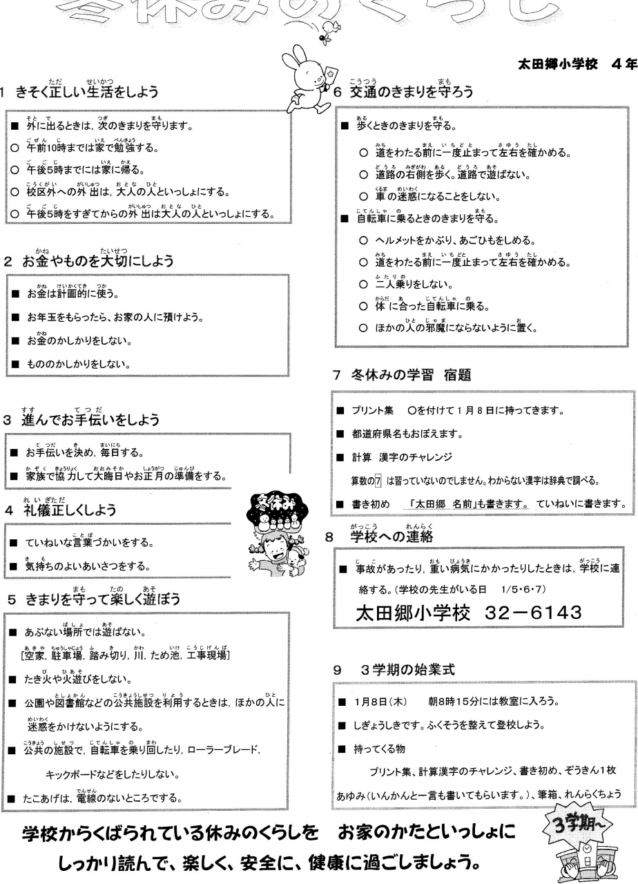よく読んで、健康・安全で楽しい冬休みにしましょう。