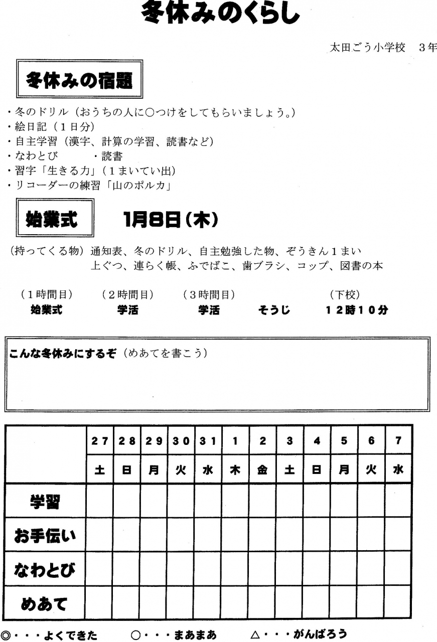 冬休みのくらし 低学年