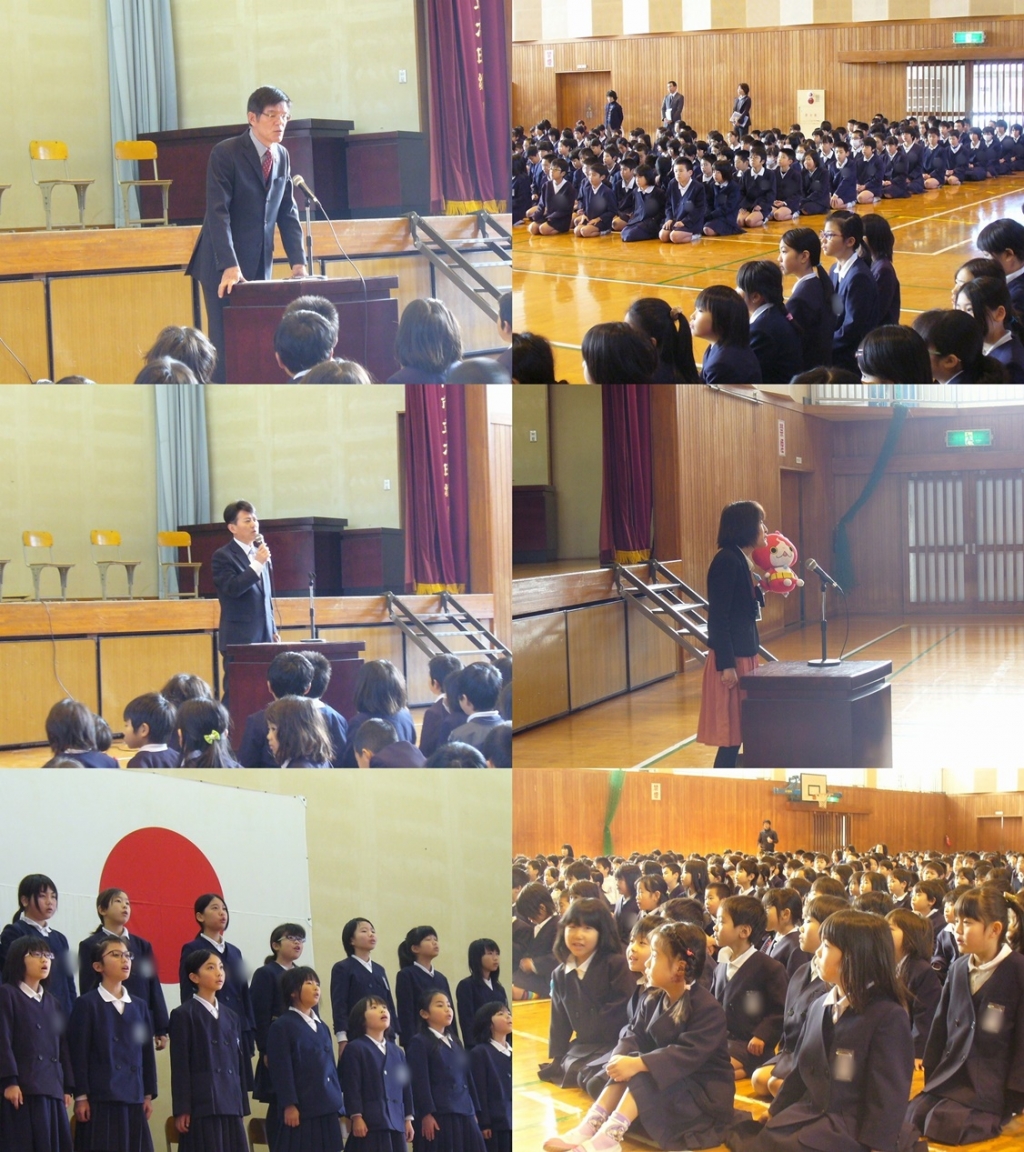 生活指導の先生からは、冬休みの安全なくらしについて、保健室の先生は、妖怪ウォッチのキャラクター「ジバニャン」と会話しながら健康なくらしについてお話しされました。