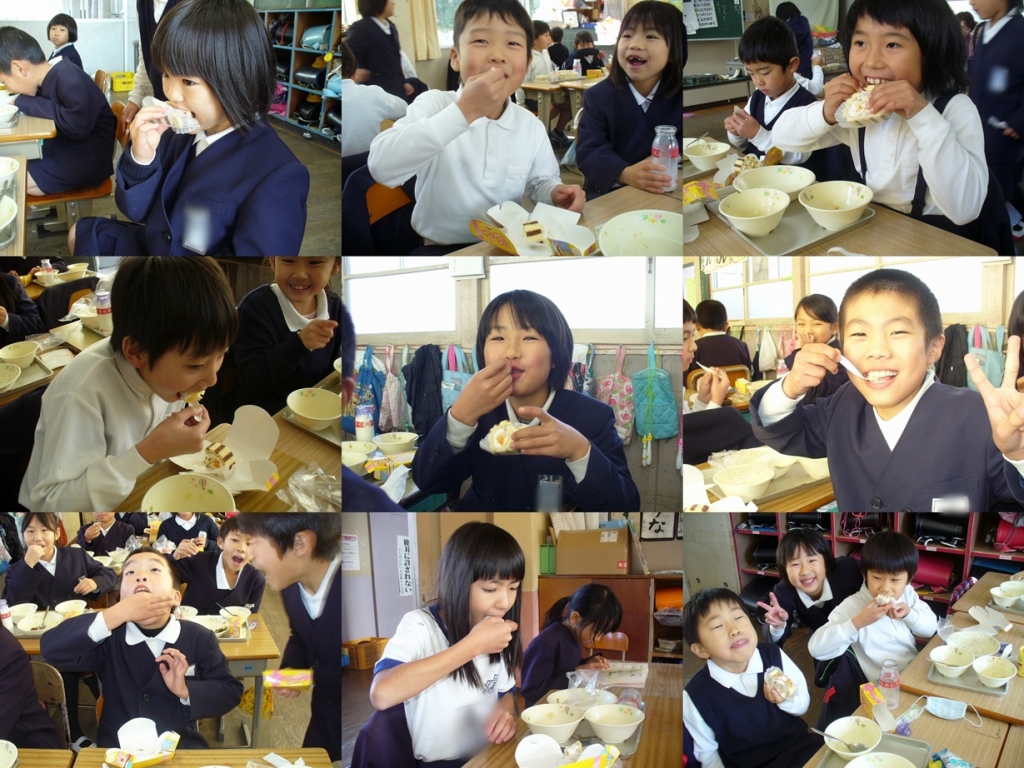 1年生から6年生までどの教室でもニコニコ笑顔です。ほんとにおいしそう・・・。