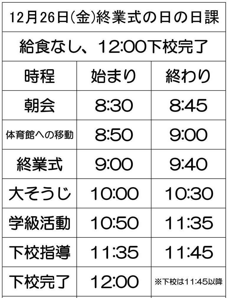 「あれっ、太田郷小は金曜日が終業式なのに、なぜ?」と思われたかもしれませんね。