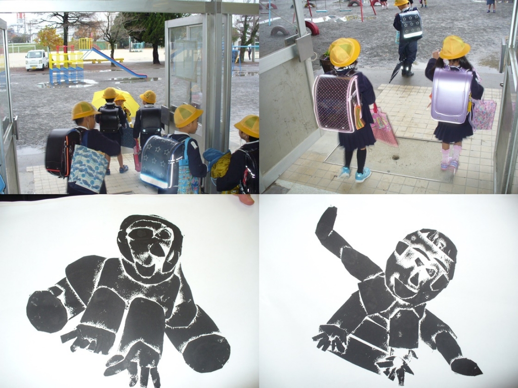 「さようなら。気をつけて。かさをわすれないように。」「わすれないよ。先生さようなら。」元気に帰っていきました。