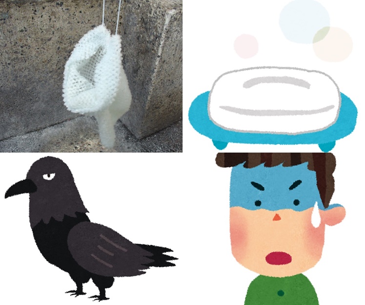 カラスが石鹸を大好きなのはご存知ですか?石鹸の主成分は油脂、つまり脂肪なのですが、カラスはこの脂肪が大好きなのです。食べ物として持ち去るのです。