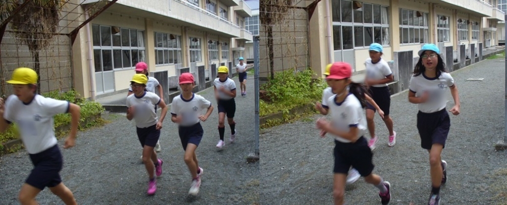 写真は五年生です。学校の中庭をコースにとってあります。みんなやっぱり普段の顔とは違います。苦しさを克服しようとするいい表情です。心も体も鍛えられる持久走。また一つ、成長しているのではないでしょうか。