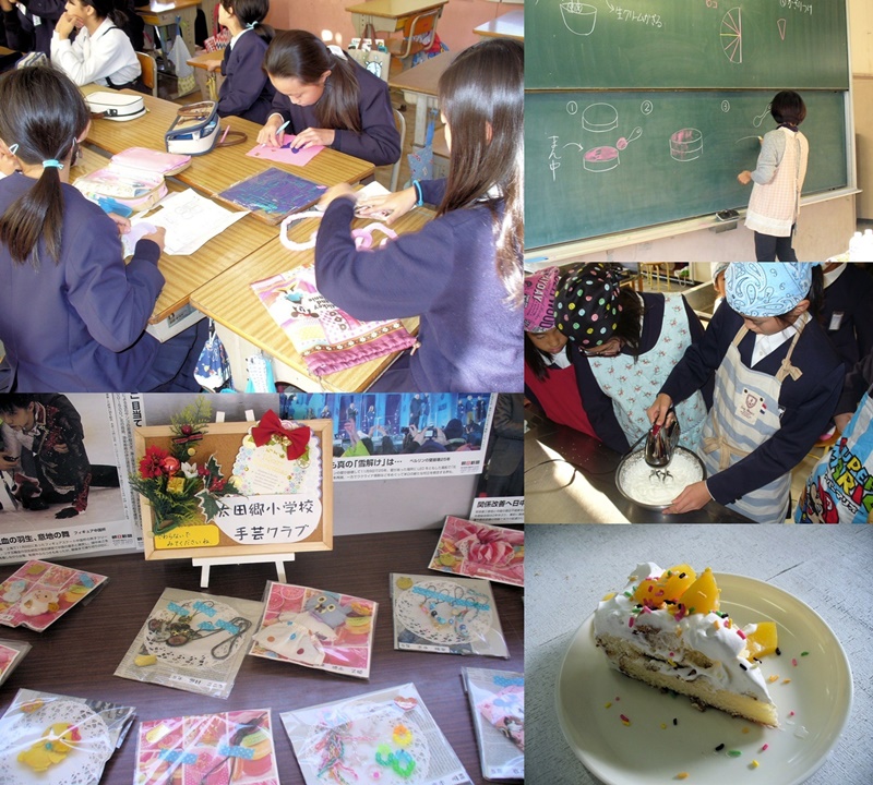右側の写真上・中・下はお料理クラブの様子です。今日は、ケーキを作りました。写真を撮りに行った私も一ついただきました。男の子も数人入っています。