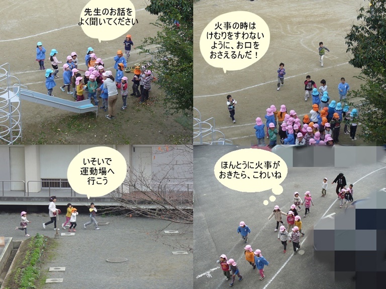お昼休みにみんな遊んでいましたので、「あれっ、訓練はないのかな?」と思ったのですが、普段通りの状態から避難訓練に変わりました。