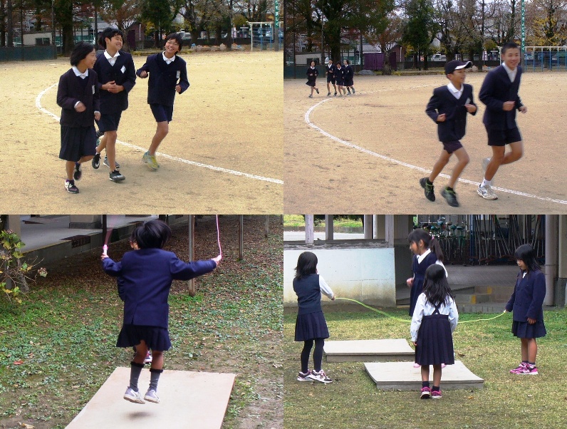 下の写真は、1年生が、中庭でなわとびをしているところです。このところ低学年を中心になわとびが増えてきました。これも冬の風物詩の一つですね。
