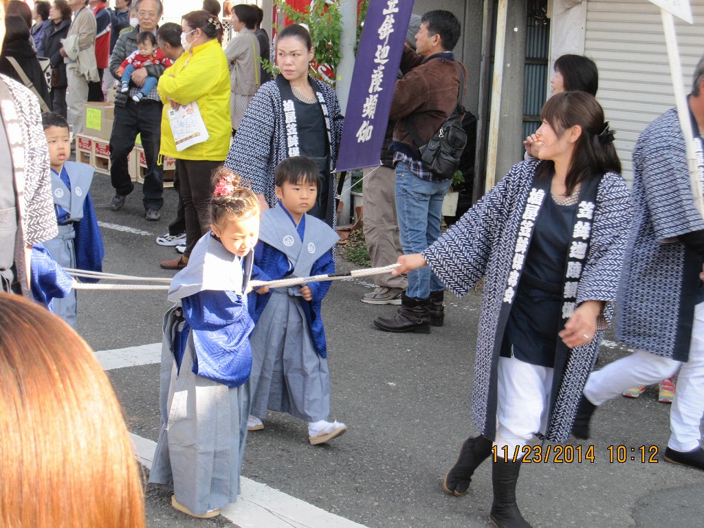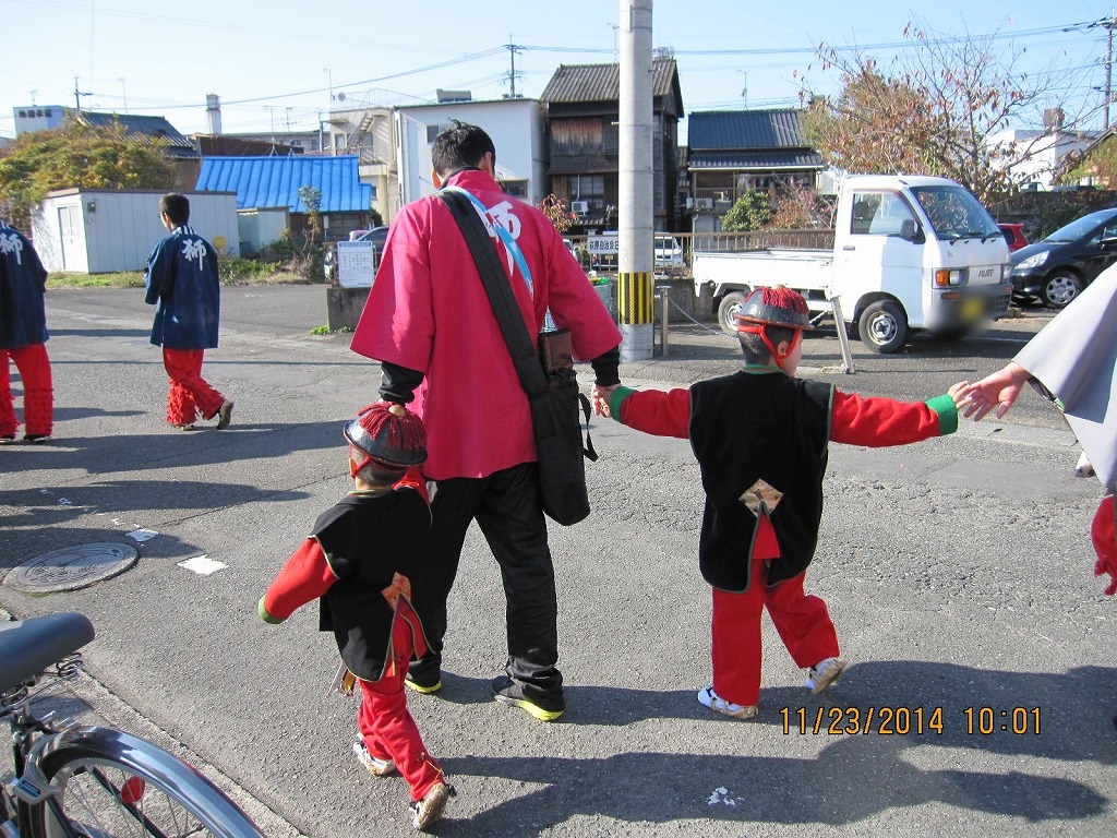 見るだけではなく、参加する子どもたちもたくさんいます。銅鑼が鳴ったり、このような服装の子どもたちを見ていると、やはり中国から渡ってきた妙見神のお祭りだなあと感じさせられます。