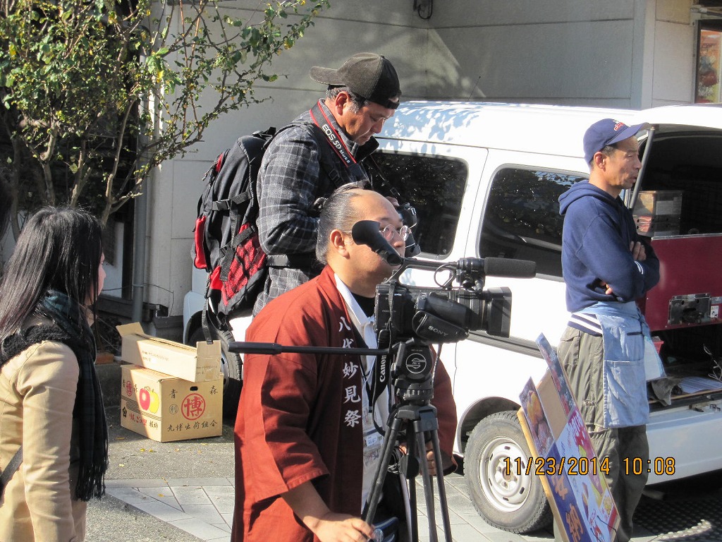 地元のケーブルテレビ「ひこいちテレビ」のスタッフの方です。ちょんまげ(本物)を結うほど気合が入っています。