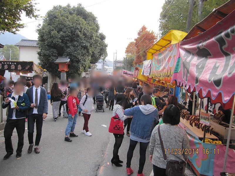 お祭りといえば出店ですね。八代神社の参道入り口から本殿のある敷地の中まで出店が数えきれないくらい並んでいます。