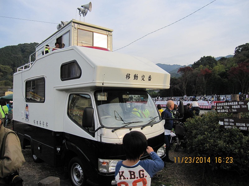 戸崎河原に行きました。ここは、ガメや花馬が走るところです。「移動交番」という珍しい車両がありました。警察の皆さんお疲れ様です。
