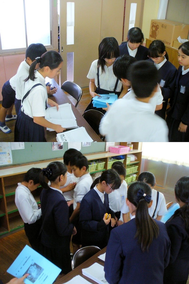 写真は、五年生の子どもたちが今回水俣を訪れるにあたって使う『しおり』を作成しているところです。