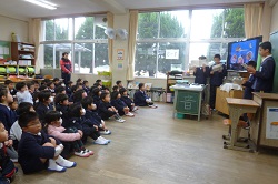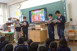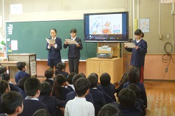 給食週間の取り組みの一つとして、給食委員が各教室に分かれて「食」に関する紙芝居などを読み、食べることの大切さについて考えました。