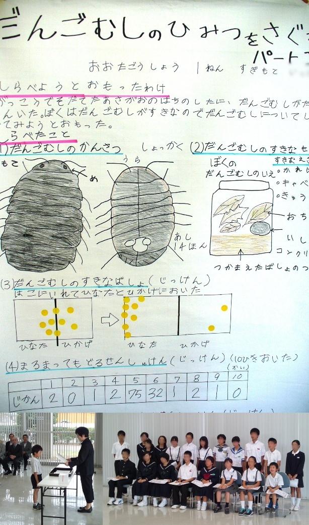 どれも力作でしたが、1年生の杉本君の「だんごむしのひみつをさぐる」パート2が特選に選ばれ、県の科学発明展に出品されることになりました。