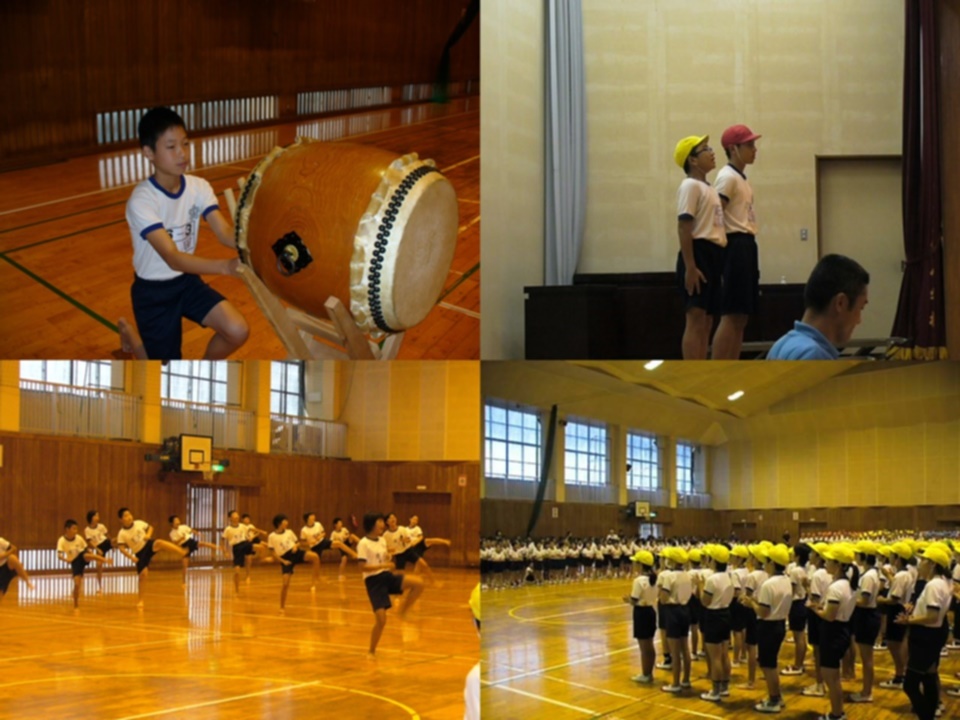 これは、赤団、白団の応援練習と地域の皆さんへの感謝のコール、また、全校で踊る「おこさ音頭」、そして、とてもめずらしい校歌の振り付けがあります。