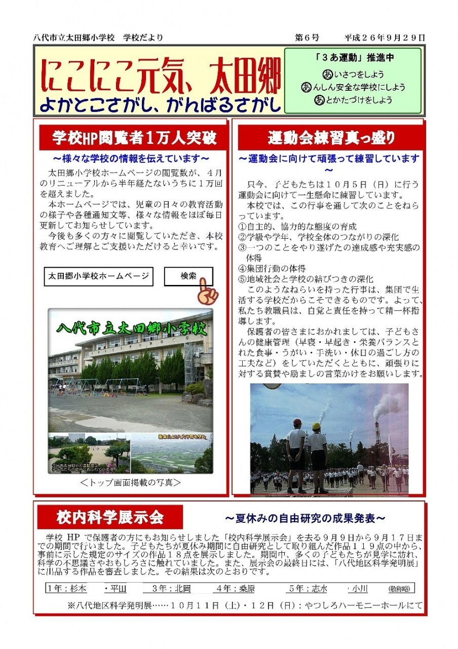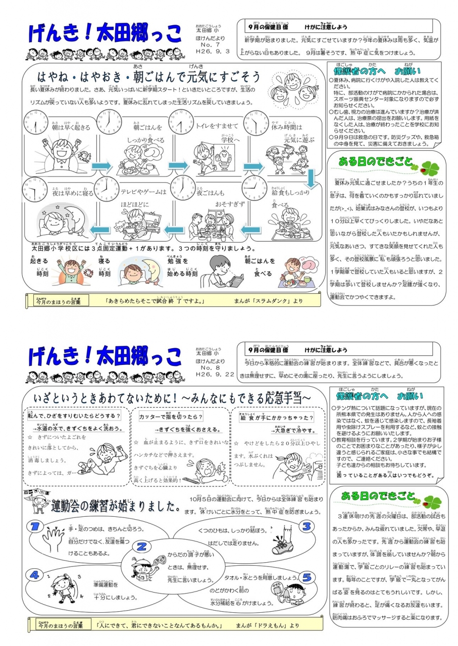 運動会まであと一週間、太田郷小の子どもたち全員が元気に運動会に参加できますようご協力お願いいたします。