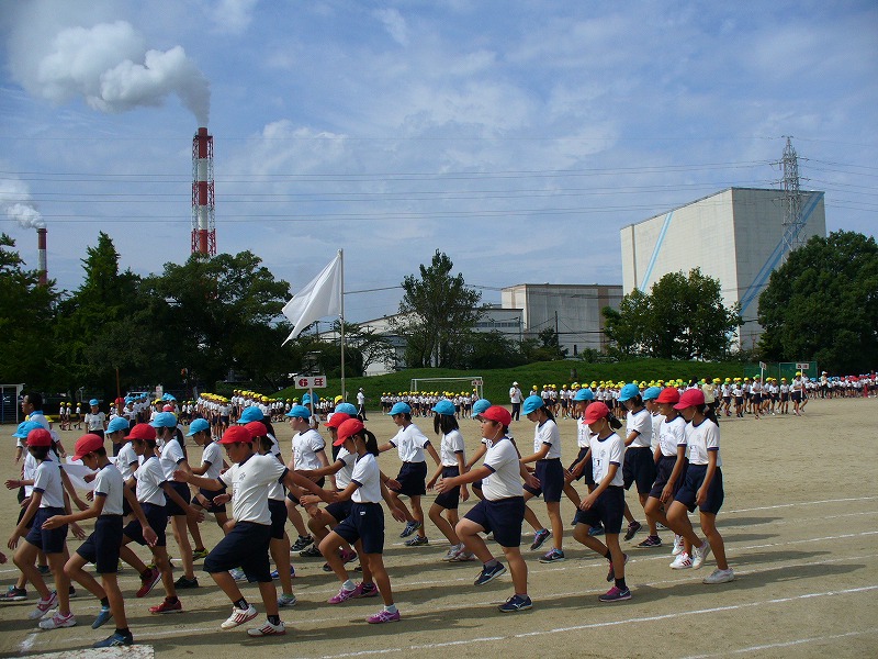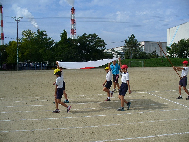 赤団、白団の団長の気合の入ったかけ声に、みんな元気よく「おーっ!」と答えていました。