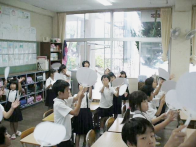 運動会では全校児童でうちわをもっておどりますので写真やビデオにおさめてください。