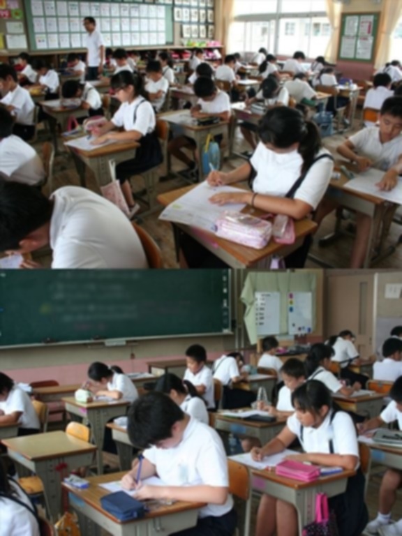 先生たちは定期的なテストや普段のミニテスト、ノート、授業態度、提出物、宿題など子どもたちの日常の学習態度、生活態度を総合的に考え評価をしています。