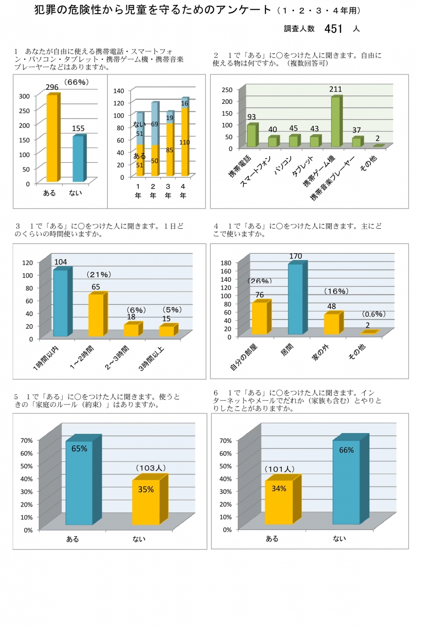 なお、このことに関連する児童へのアンケート結果もお知らせします。あわせてお読みいただき、お子さんと話し合いをしてみてください。
