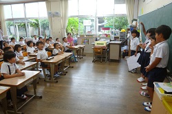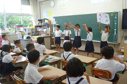 やつしろしりつおおたごうしょうがっこうです。 合(愛)言葉は、「にこにこ元気! 太田GO!!」