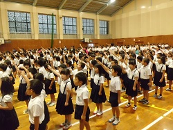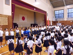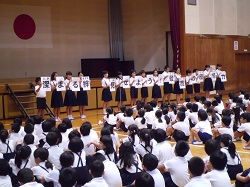 やつしろしりつおおたごうしょうがっこうです。 合(愛)言葉は、「にこにこ元気! 太田GO!!」