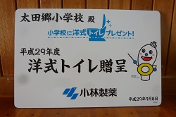 贈呈式後、さっそくトイレが開放され、2年生がトイレの前で長い列をつくっていました。これから気持ちよくトイレを使うことができそうです。小林製薬様ありがとうございました。