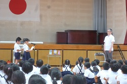 やつしろしりつおおたごうしょうがっこうです。 合(愛)言葉は、「にこにこ元気! 太田GO!!」