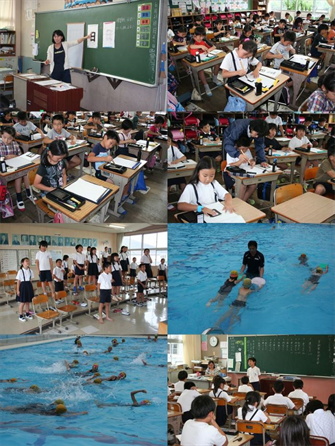 水泳は、個人差を考慮して、たくさん泳ぐグループと少しずつ泳ぐグループに分けてあります。