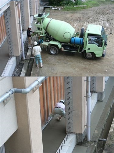 学校の耐震工事もずいぶん進んできました。この前は大きなクレーンが入ってきましたし、上から見ていると一年生教室横のコンクリートのろうかがきれいに修復されていきます。