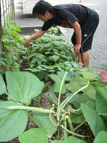 Y先生は、理科の教材でもあるツルレイシとインゲンマメを中庭の花壇で育てていらっしゃいます。