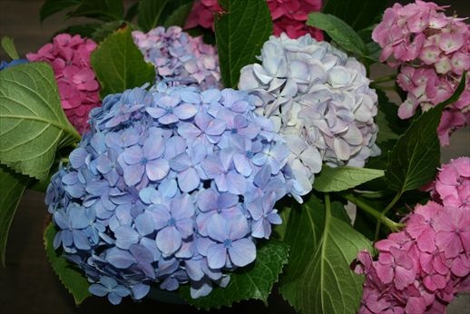 教室に飾るためでしょうか。廊下にきれいなアジサイが水につけておいてありました。