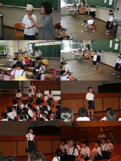 1年生は、国語で「おむすびころりん」の授業でした。自分が、おじいさんになってセリフを考えながら体で表現しています。