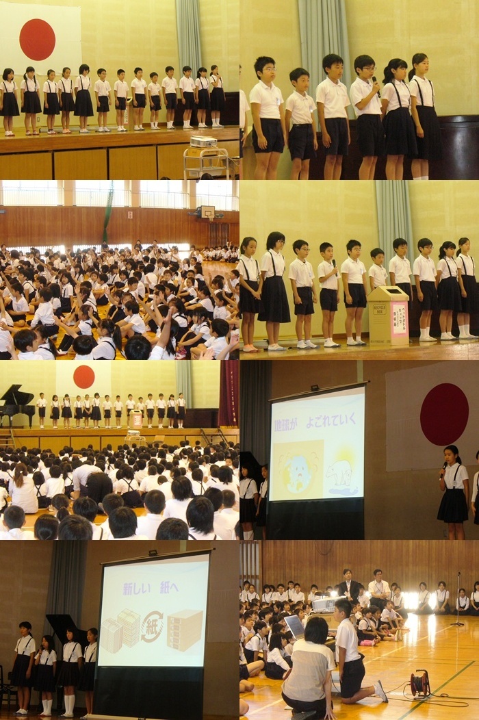 そのあとは、生活指導の先生からあいさつやよいことをした人の紹介、反対に、ゴミを散らかす人がいることの中などがありました。