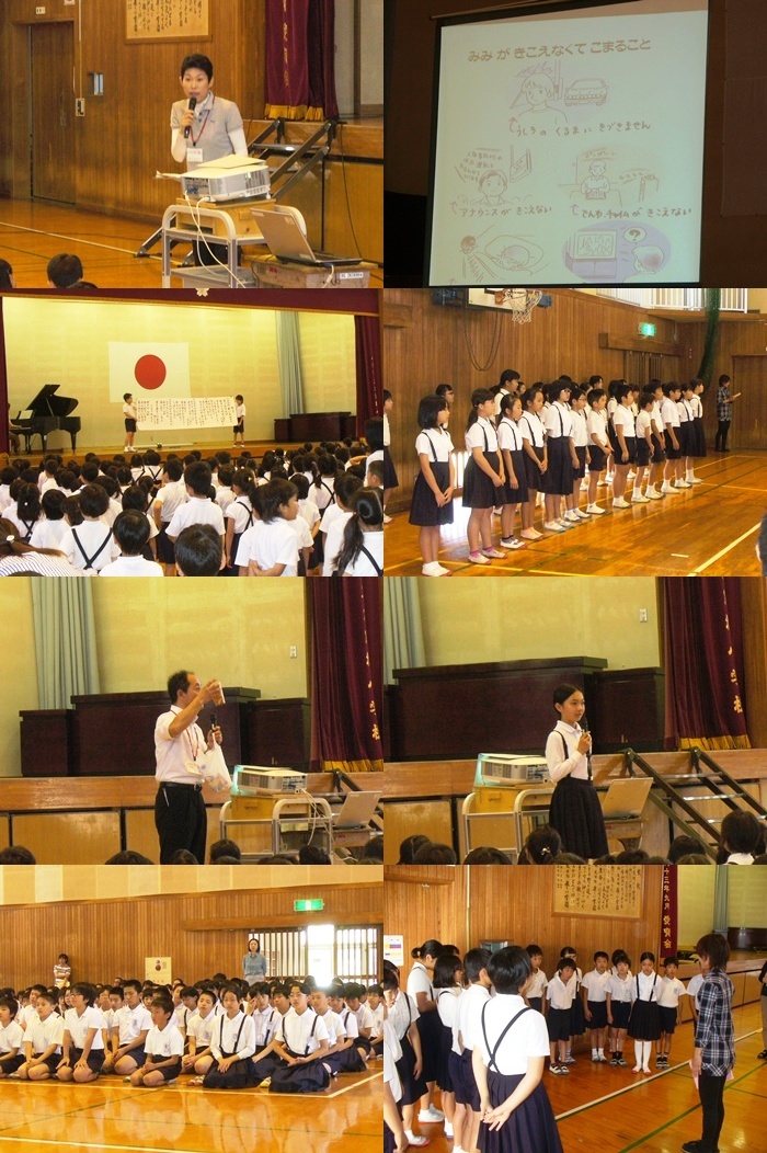 委員会の発表に続いて、つくし学級(特別支援学級)の先生から「難聴」についてのお話がありました。
