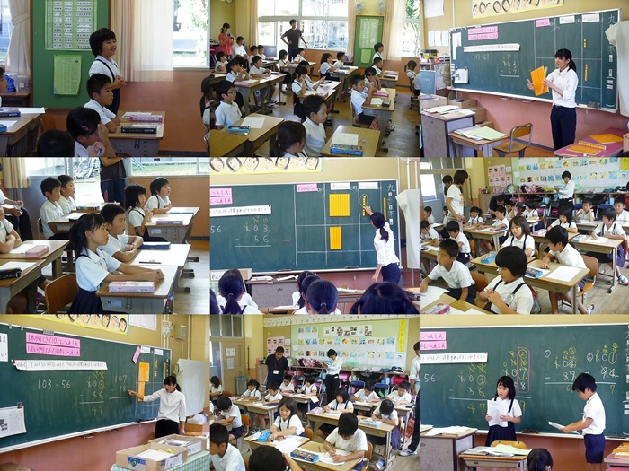 1人の方は昨年度に引き続き2週間の教育実習を行い、その成果として2年生の算数の授業を公開しました。
