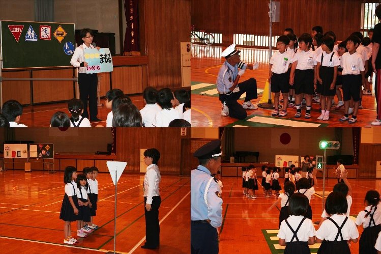 信号の見方や歩き方を実際にやってみました。1年生も真剣に取り組めました。