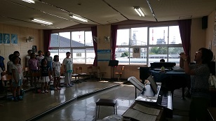 1学期、暑さに負けずずっと練習を重ねてきた、課題曲「ぼくらのエコー」と自由曲「インテラパックス」を歌います。