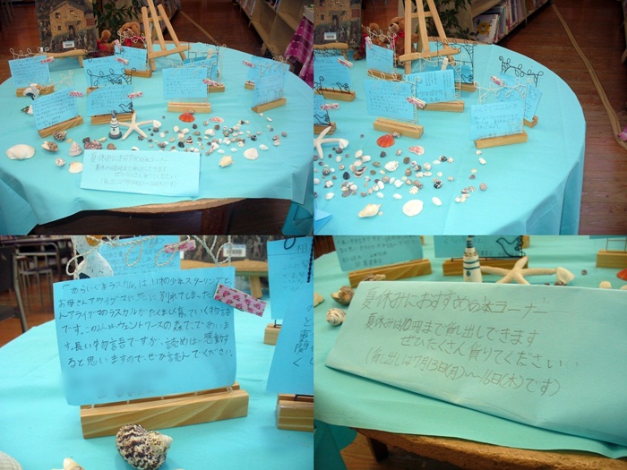 図書委員会の人たちがおすすめの本を一人一人メッセージカードに書いています。