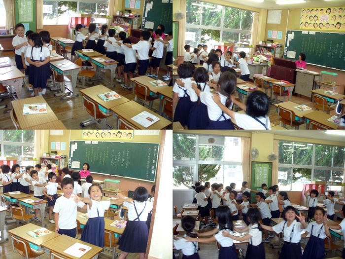 下の写真は、二年生の音楽の時間です。歌も歌っていないし、楽器も持っていないけど、みんな楽しそうですね。