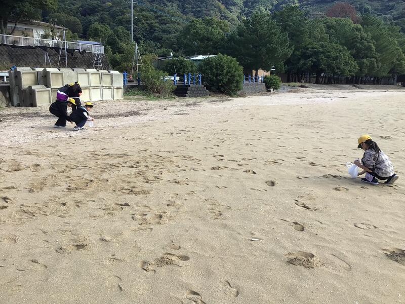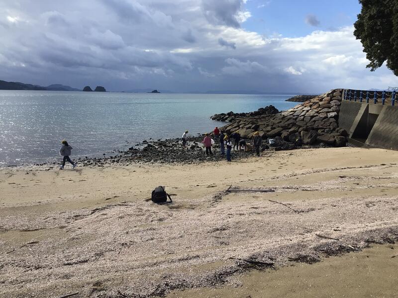 昼ごはんを食べて、天気が良くなったので短時間ですが、砂浜で貝拾いをしています。