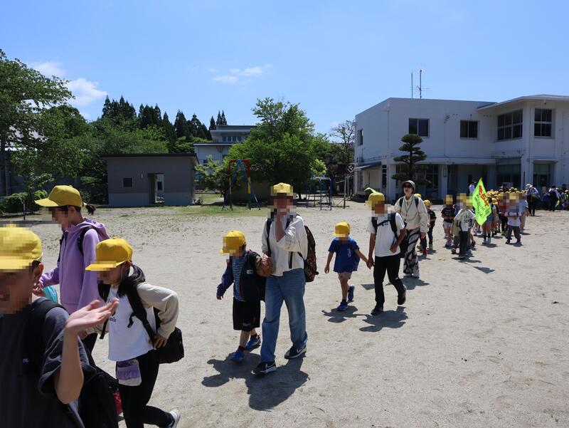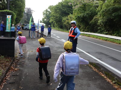 また、現在は、世持地区でも保護者の方が一緒に歩いて登校して来られています。中山地区は、今年も登下校の送り迎えをしていただいています。他にもバスの乗降の見守りや交差点に立っていただいている方がいらっしゃいます。