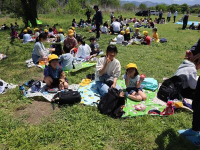 5月2日(金)に素晴らしい晴天に恵まれ、「津志田河川自然公園」(乙女河原)に歓迎遠足に行ってきました。