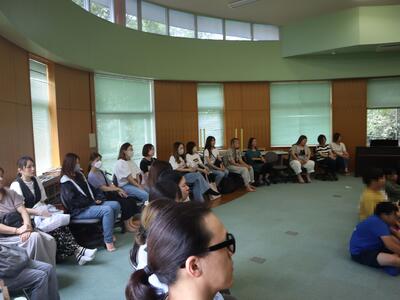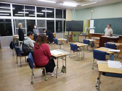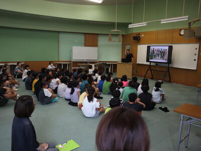 午後1時30分から語り部の方の講話を聞いています。